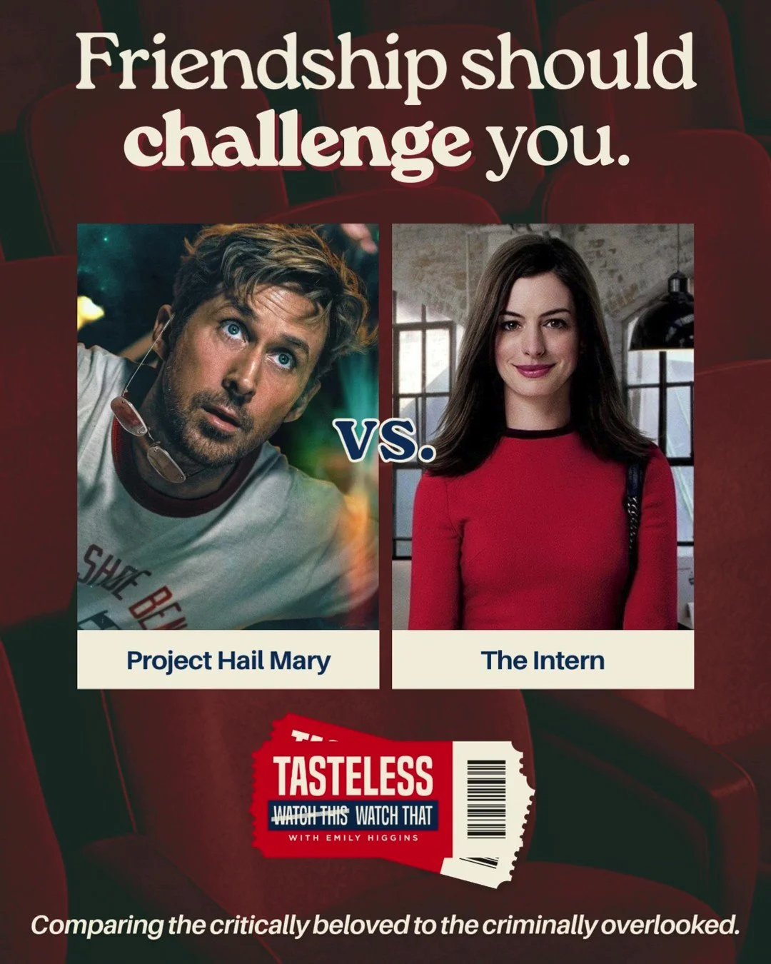 Two movies about unlikely friendships and learning from people different than yourself — it’s Project Hail Mary vs. The Intern.